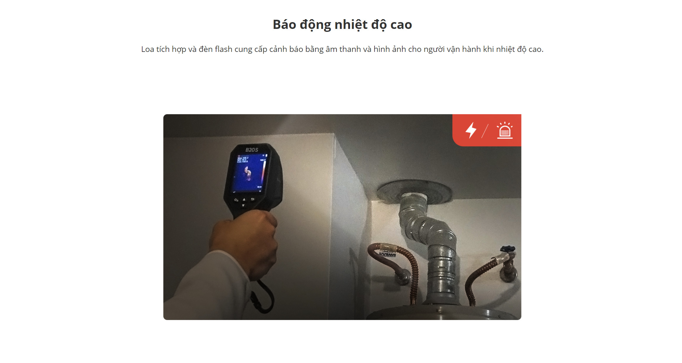 Một tính năng khác không thể bỏ qua của Hikmicro B20S là khả năng phát hiện và cảnh báo các vấn đề nhiệt độ thông qua âm thanh và hình ảnh. Điều này giúp người dùng có thể nhanh chóng nhận diện và xử lý các vấn đề nhiệt độ, tránh được những sự cố không mong muốn trong quá trình làm việc. Bên cạnh đó, thiết bị còn có khả năng chống nước và chống bụi với tiêu chuẩn IP54, đảm bảo hoạt động tốt trong các điều kiện môi trường khắc nghiệt.