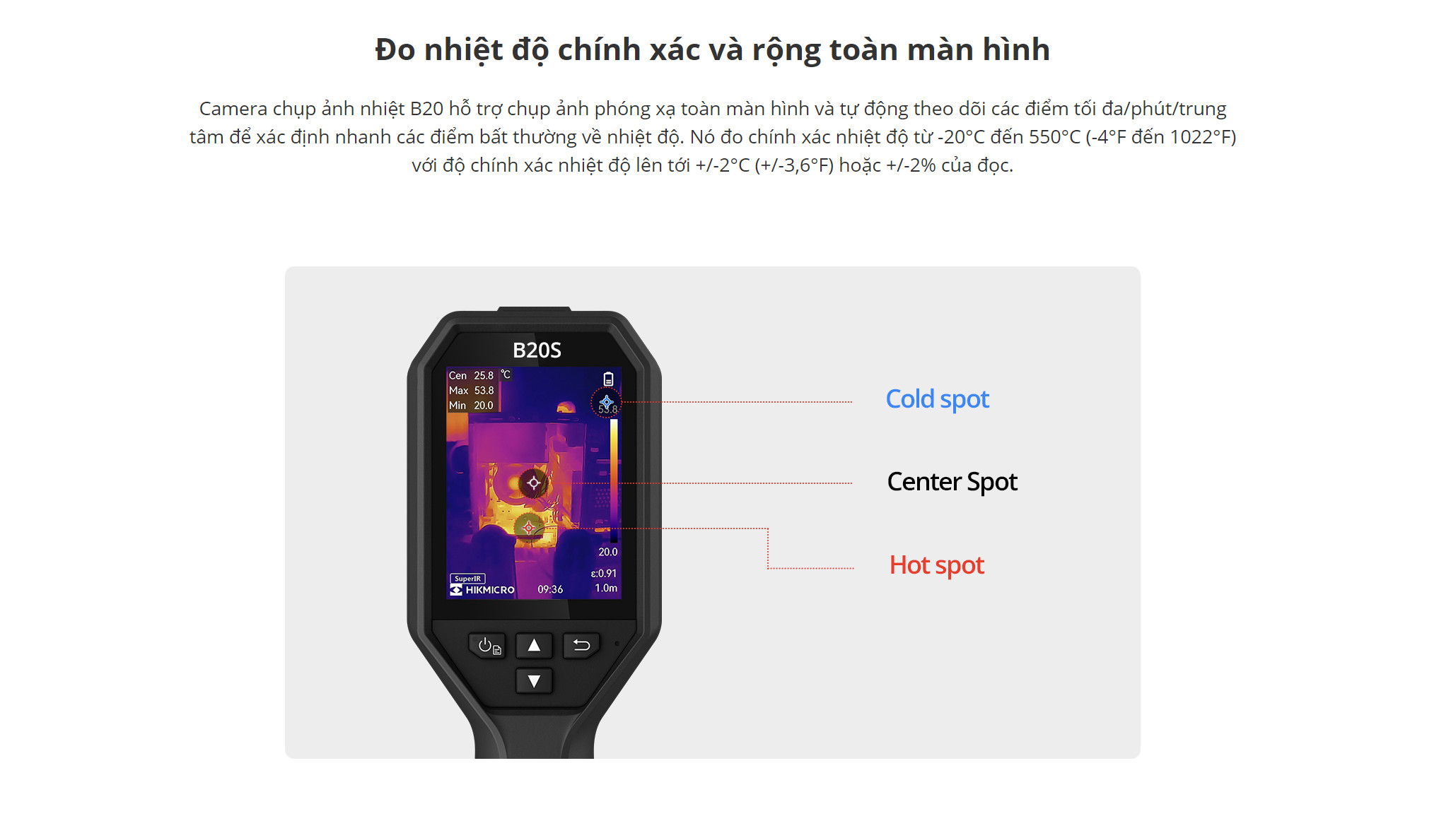 Tóm lại, Hikmicro B20S là một thiết bị đo nhiệt độ bằng hình ảnh nhiệt cầm tay tiên tiến, mang lại nhiều lợi ích và tiện ích cho người dùng. Với những tính năng vượt trội như độ phân giải hình ảnh cao, dải đo nhiệt độ rộng, màn hình hiển thị sắc nét, khả năng kết nối linh hoạt và thời gian hoạt động lâu dài, Hikmicro B20S chắc chắn là một công cụ hữu ích cho các công việc liên quan đến giám sát và phân tích nhiệt độ.