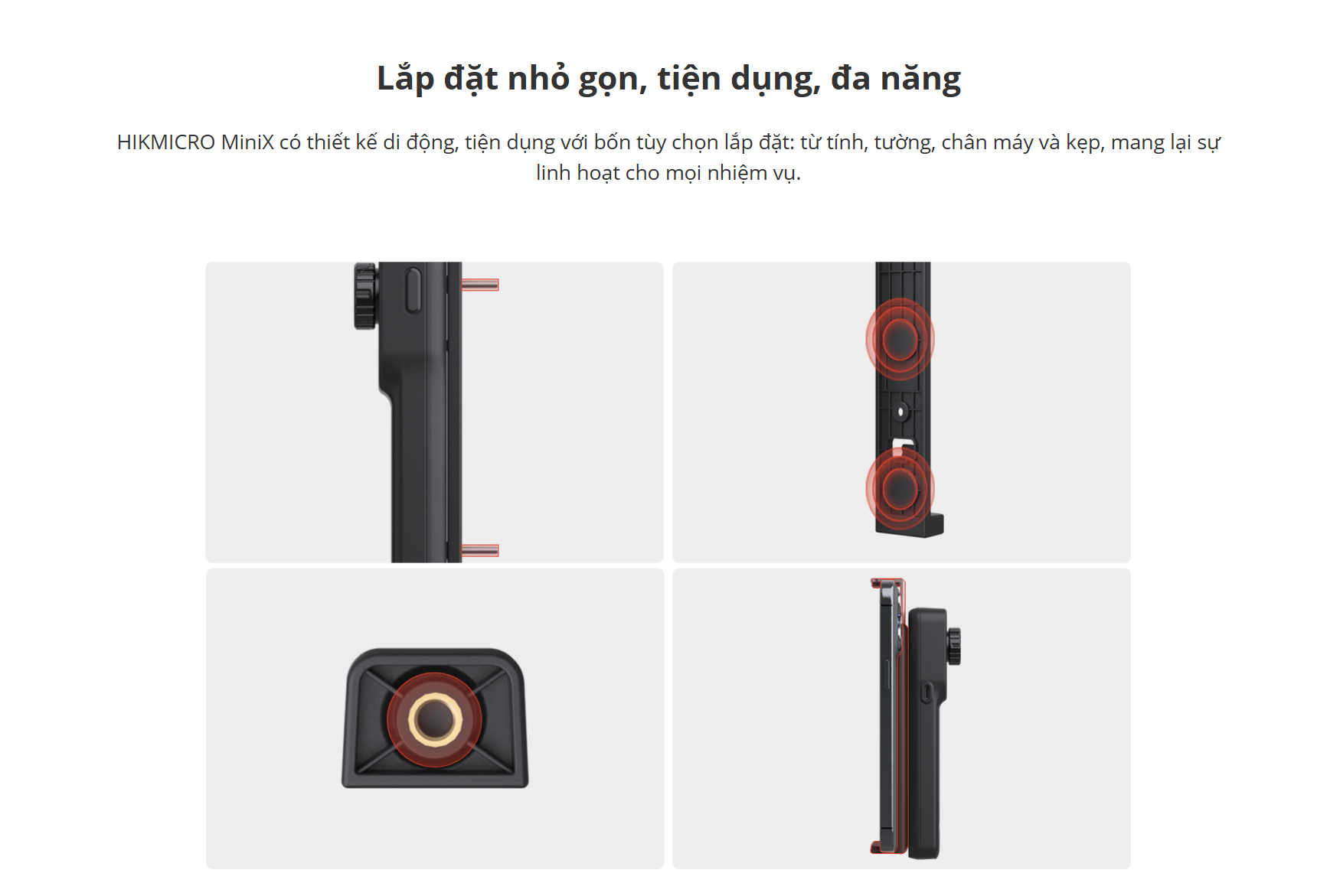 Đổi mới của HIKMICRO MiniX là một công cụ chụp ảnh nhiệt đa năng kết nối không dây với thiết bị thông minh của bạn. MiniX cung cấp giá đỡ cho các tùy chọn cài đặt linh hoạt, chẳng hạn như kẹp vào điện thoại hoặc máy tính bảng của bạn để dễ dàng vận hành bằng một tay, gắn tường từ tính hoặc lắp chân máy để theo dõi nhiệt độ trong thời gian dài. Nó có ống kính kép, bộ dò VOx độ phân giải cao và camera quang học 0,3 MP để tăng thêm chi tiết. Với các tính năng SuperIR™ và fusion, bạn có thể chụp ảnh nhiệt sắc nét và nhanh chóng xác định các vấn đề ẩn với các phép đo nhiệt độ chính xác. Phạm vi nhiệt độ rộng từ -20°C đến 550°C khiến nó trở nên lý tưởng để kiểm tra tòa nhà, bảo trì thiết bị HVAC, điện và cơ khí. MiniX có tốc độ khung hình 25 Hz để kiểm tra nhanh và chức năng Wi-Fi để chia sẻ hình ảnh theo thời gian thực. Đây là một công cụ chụp ảnh nhiệt mạnh mẽ vừa vặn trong túi của bạn, sẵn sàng bất cứ khi nào bạn cần.