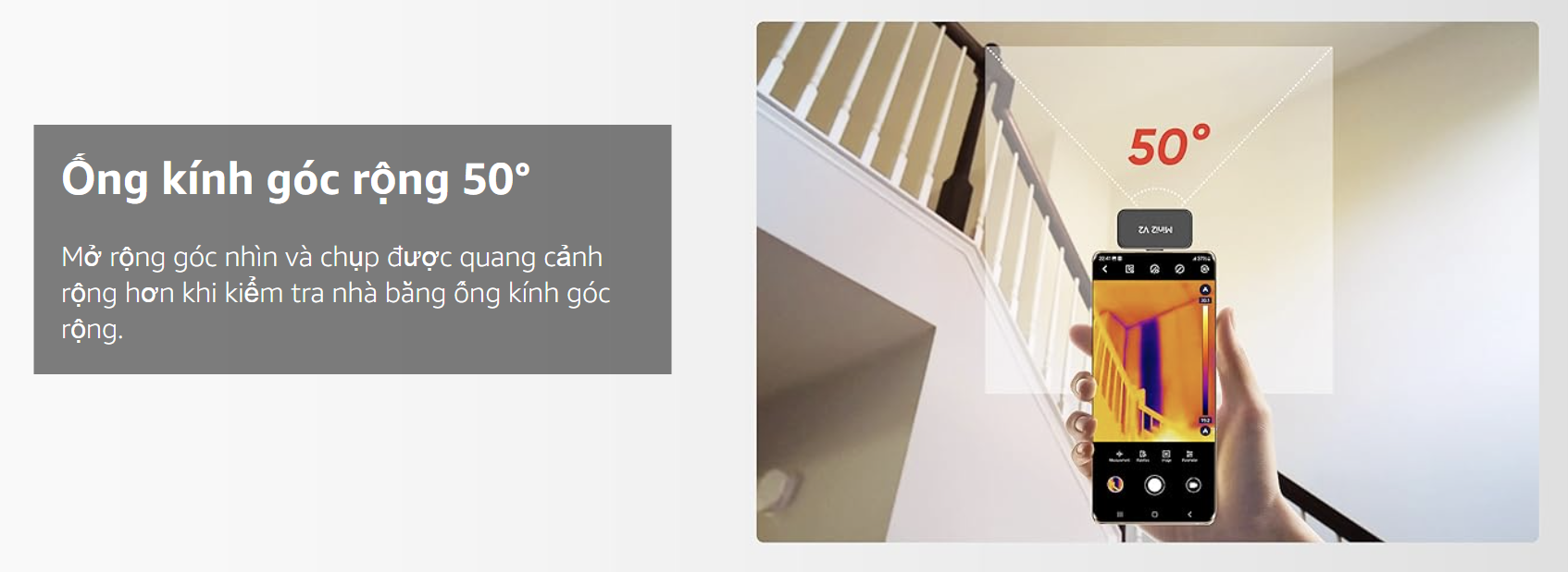 - Chất lượng hình ảnh được cải thiện: Camera IR Mini2 V2 cung cấp độ phân giải IR 256x192 và được cải thiện bằng công nghệ cải thiện hình ảnh SuperIR tiên tiến để cải thiện hình ảnh theo thời gian thực, giảm nhiễu và cải thiện chi tiết cạnh. Nó cung cấp chế độ xem toàn cảnh mượt mà ở tần số 25Hz và cho phép điều chỉnh độ sắc nét, độ tương phản, độ sáng và phân phối màu. Mở rộng góc nhìn của bạn và chụp được cảnh rộng hơn để kiểm tra nhà ở, ô tô và điện với ống kính góc rộng 50°.