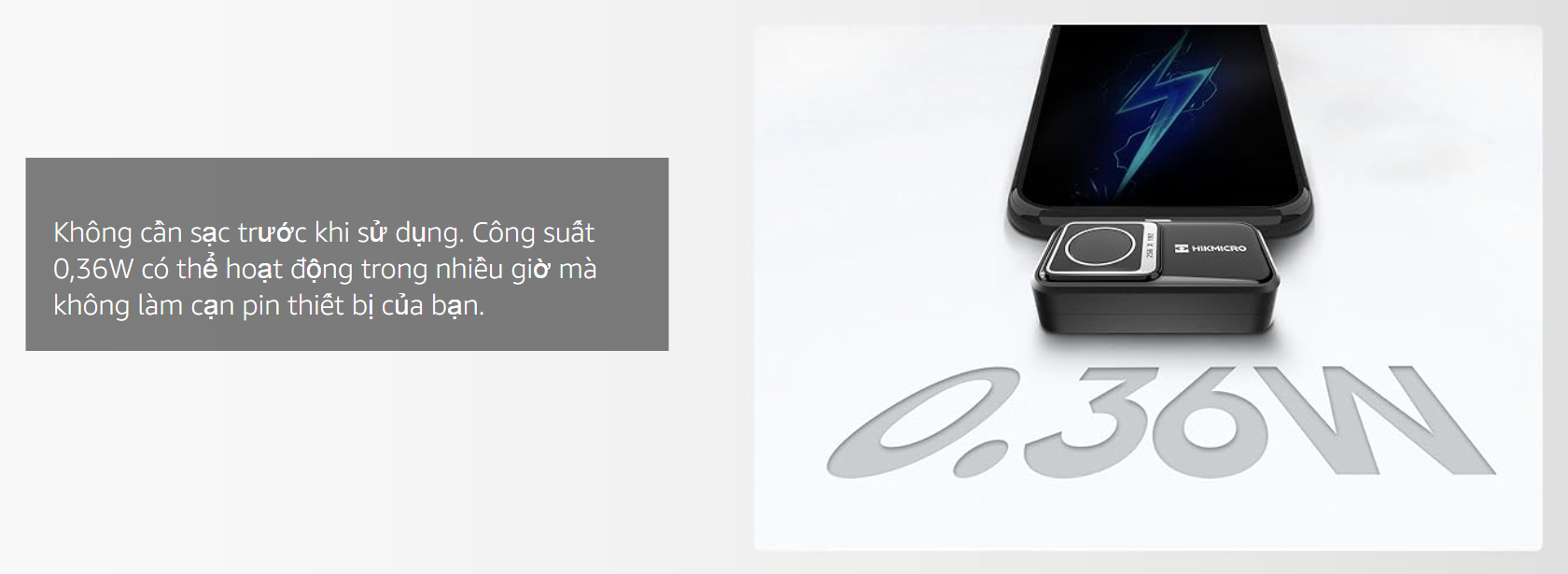 (3) Phần mềm HIKMICRO Analyzer dành cho Windows cung cấp các tính năng nâng cao: quản lý hình ảnh, phân tích hàng loạt, giám sát dữ liệu thời gian thực và tạo báo cáo có thể tùy chỉnh. - Không cần pin, mức tiêu thụ điện năng thấp: Với thiết kế không cần pin, bạn sẽ không bao giờ phải lo lắng về việc sạc camera nhiệt Mini2 V2 trước khi sử dụng. Thêm vào đó, yêu cầu về công suất cực thấp chỉ 0,36W có nghĩa là nó có thể chạy trong nhiều giờ mà không làm cạn kiệt pin của thiết bị. Nó đã được thử nghiệm và có thể chạy trong 4-6 giờ trên điện thoại thông minh và máy tính bảng. Điều này làm cho nó trở thành một công cụ cắm và chạy tiện lợi và đáng tin cậy để sử dụng lâu dài ngoài thực địa, đảm bảo hoạt động liền mạch và hiệu suất đáng tin cậy.