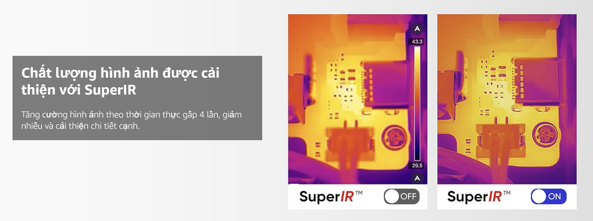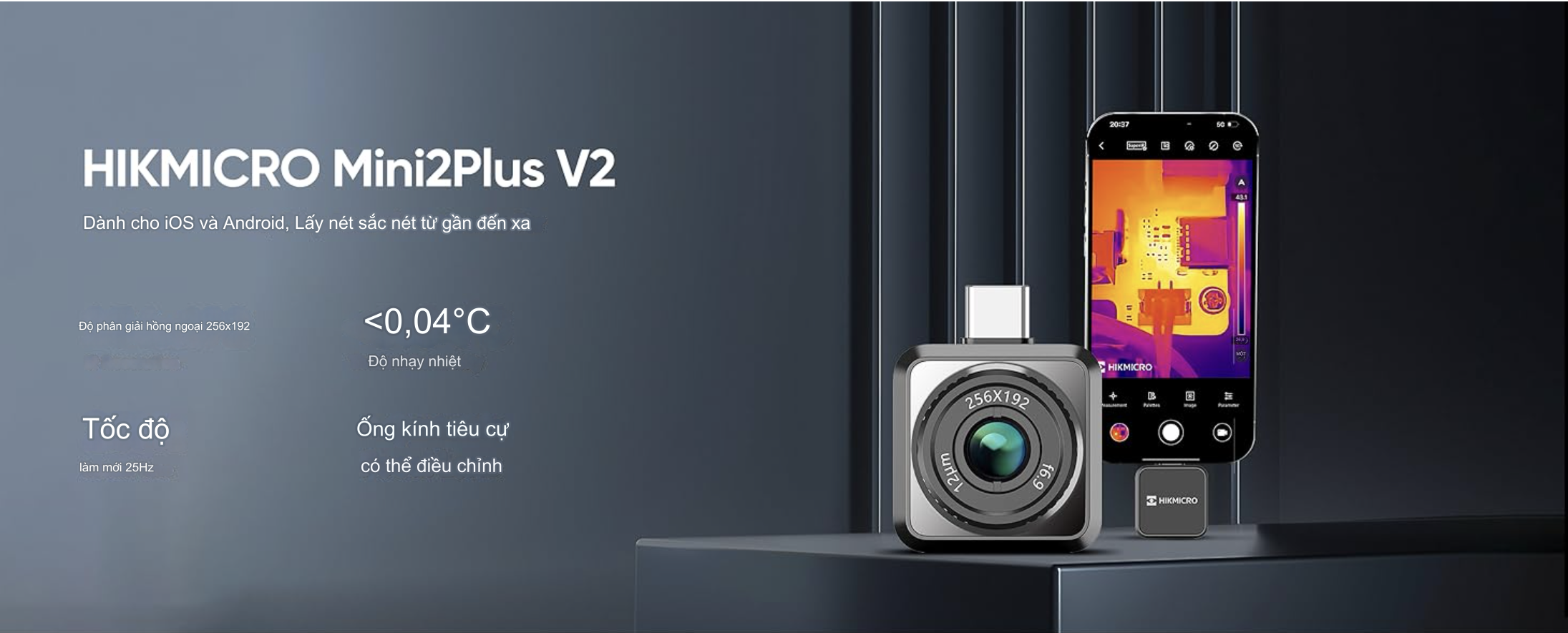- Chất lượng hình ảnh được cải thiện: Camera IR Mini2Plus V2 có độ phân giải IR 256x192 và công nghệ SuperIR để cải thiện chất lượng hình ảnh. Nó cung cấp khả năng cải thiện hình ảnh theo thời gian thực, giảm nhiễu và cải thiện chi tiết cạnh. Với ống kính tiêu cự có thể điều chỉnh 6,9mm, nó chụp được các chi tiết chính xác để sửa chữa, kiểm tra và theo dõi.