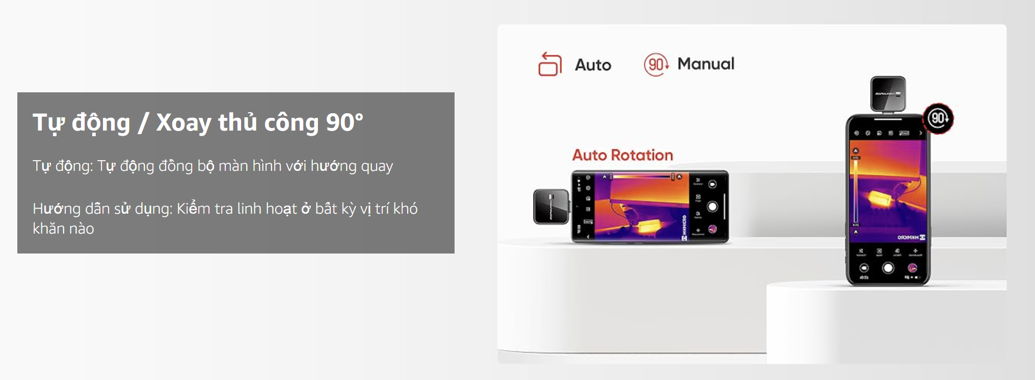 - Di động & Dễ sử dụng: Chỉ nặng 0,85oz (24g), camera nhiệt Mini2Plus V2 nhỏ gọn và nhẹ. Cắm và chạy với tất cả điện thoại thông minh hoặc máy tính bảng của bạn (Android/iOS). Xoay "90°" tự động và thủ công cho phép kiểm tra linh hoạt. Gói hàng bao gồm cáp mở rộng 23,6" (60cm), túi đựng và bộ chuyển đổi USB để thuận tiện.
