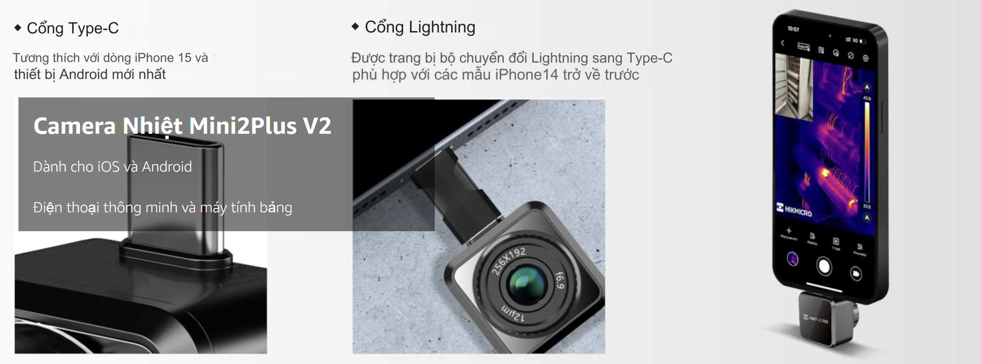Hikmicro camera Mini2Plus V2 tích hợp với điện thoại