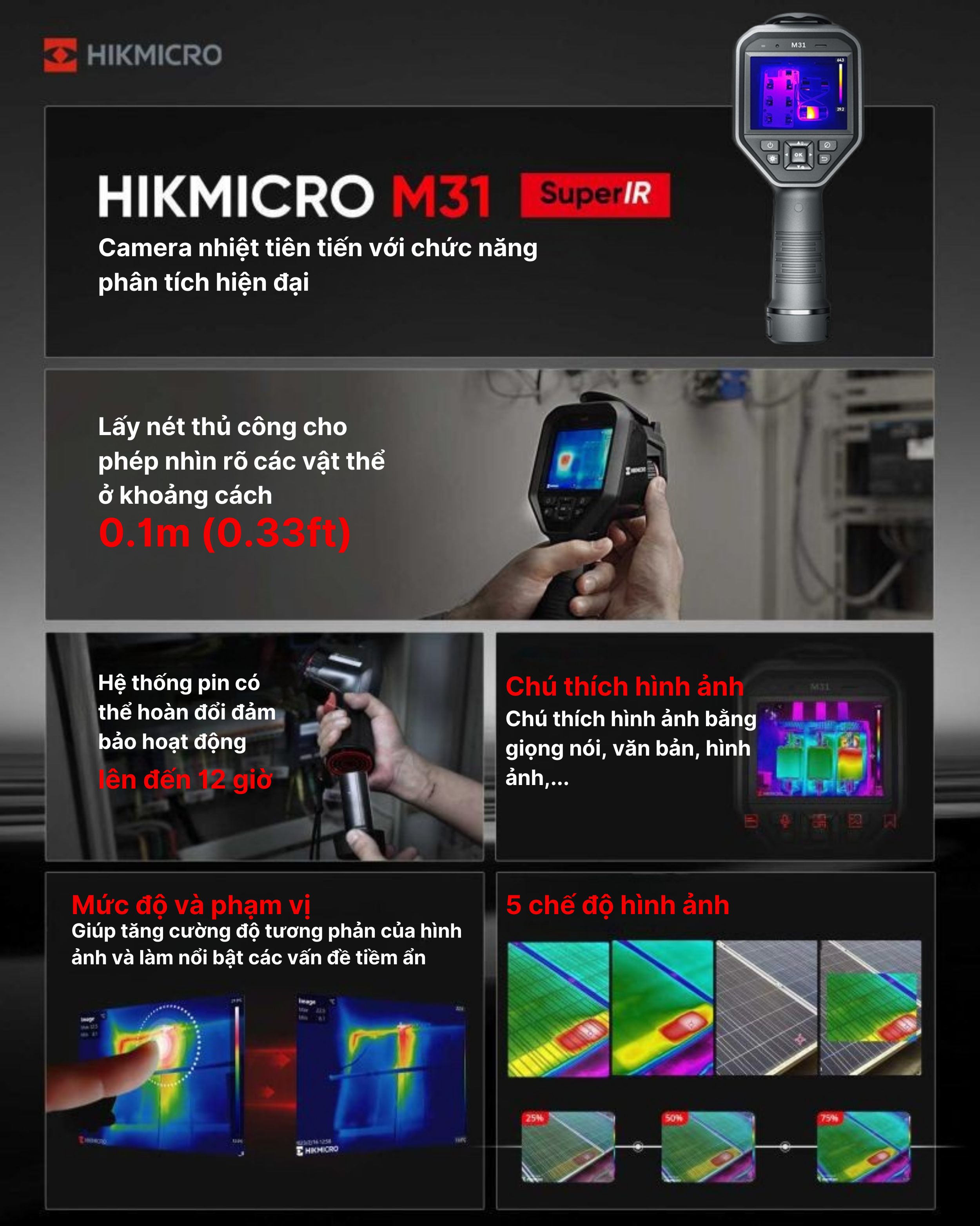 Với sự kết hợp giữa công nghệ tiên tiến, chất lượng hình ảnh vượt trội và các tính năng thân thiện với người dùng, camera ảnh nhiệt HIKMICRO M31 chính là công cụ tối ưu giúp bạn kiểm tra chính xác, đáng tin cậy và hiệu quả.