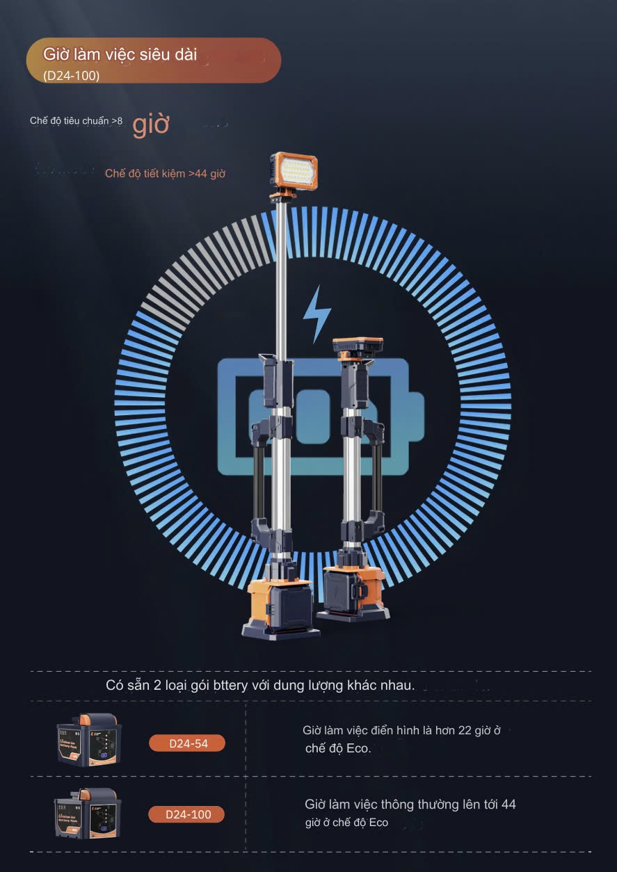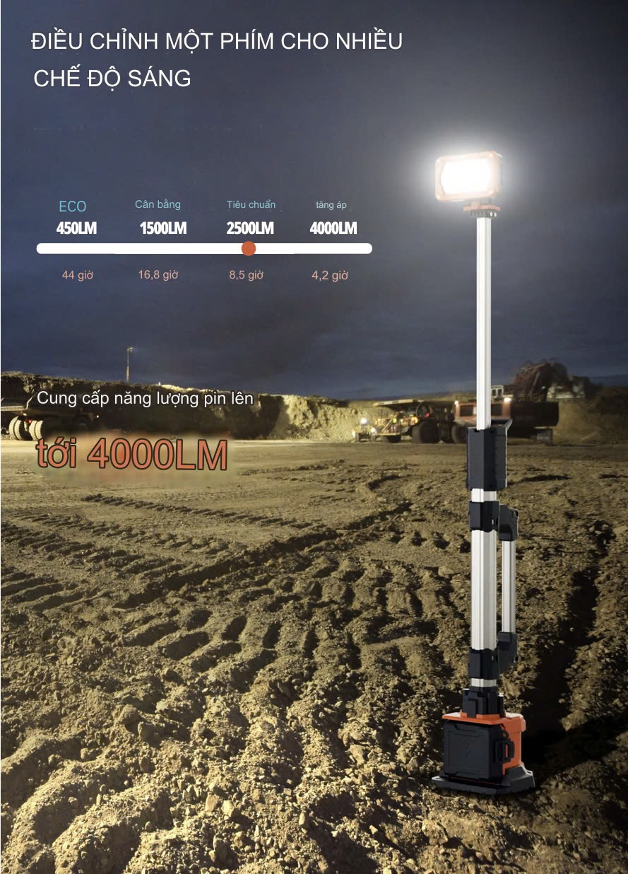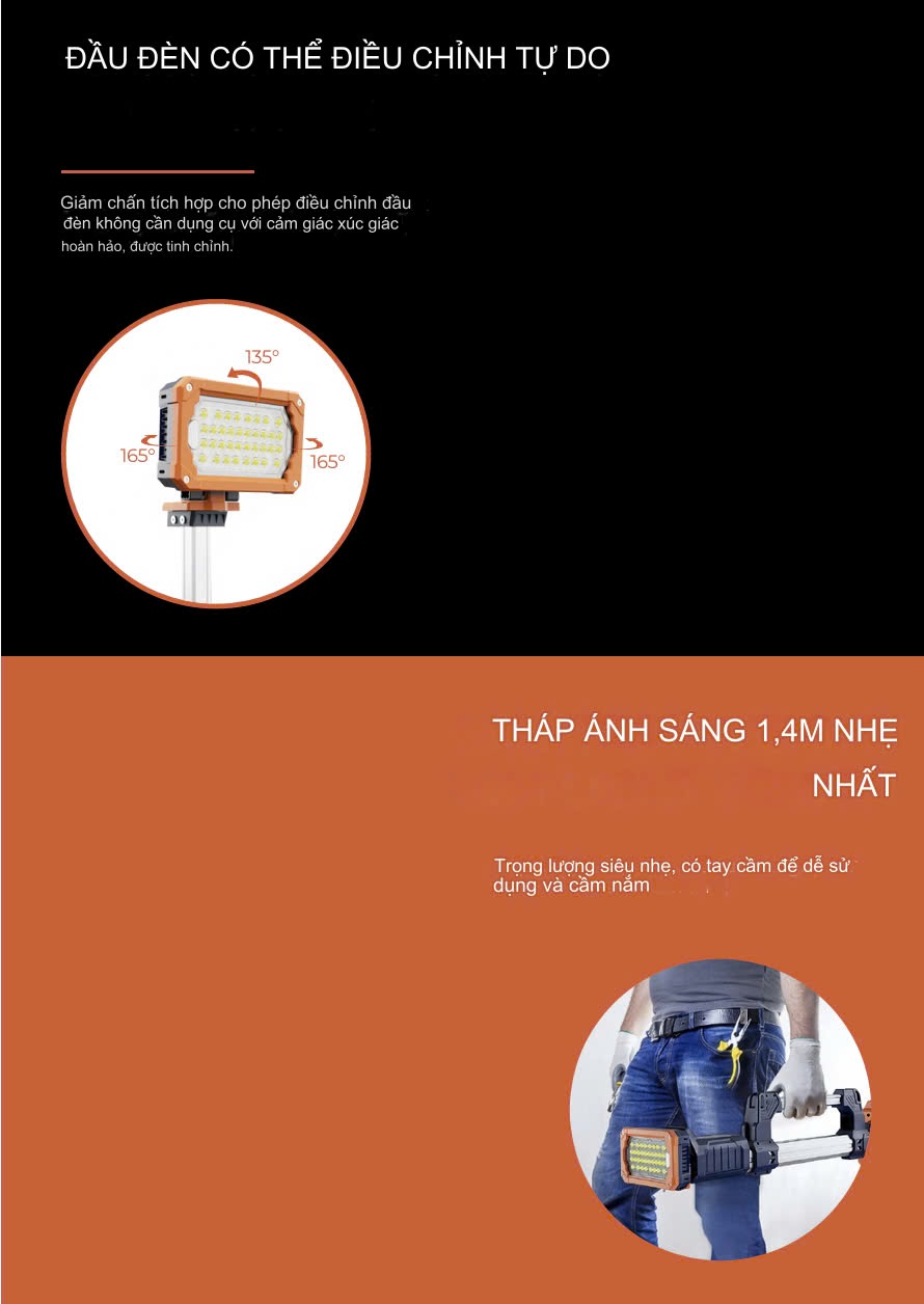 - Cột đèn có thể kéo dài : Cột đèn có thể kéo dài tới 2,3 mét, cho phép điều chỉnh chiều cao linh hoạt để có ánh sáng tối ưu.