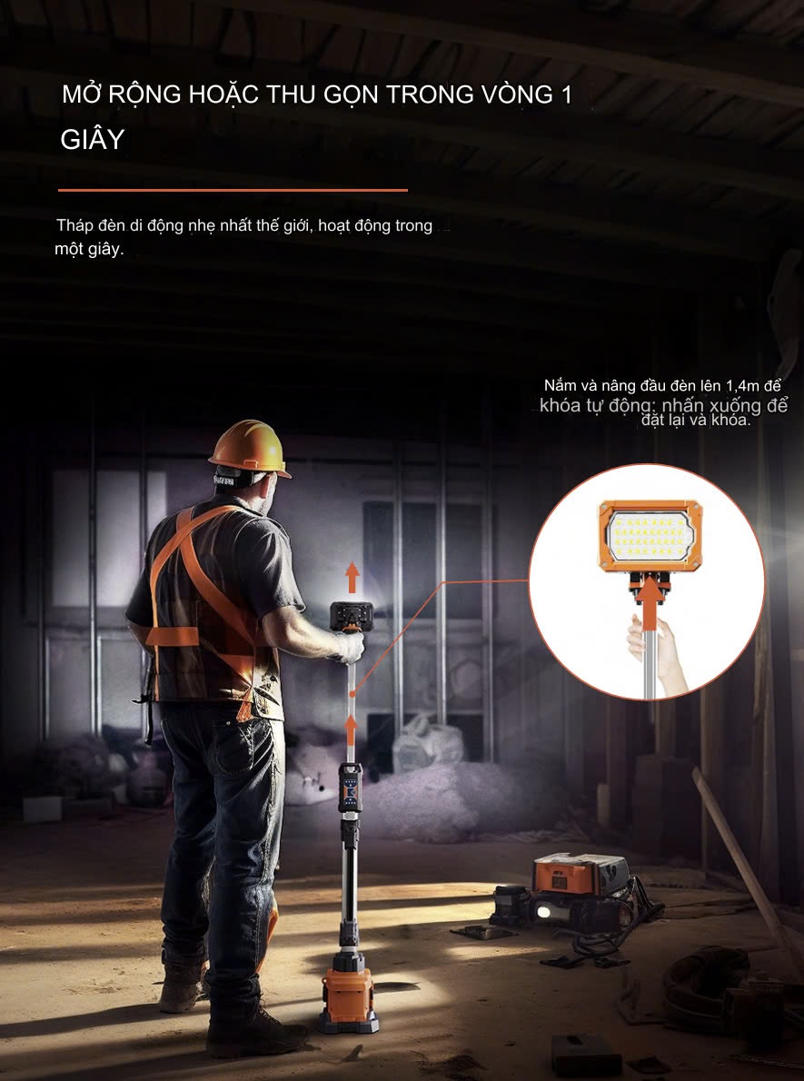 - Điều chỉnh độ cao an toàn : Được trang bị khóa để khóa đèn chắc chắn ở bất kỳ độ cao nào đã chọn, đảm bảo đèn luôn ổn định trong quá trình sử dụng.