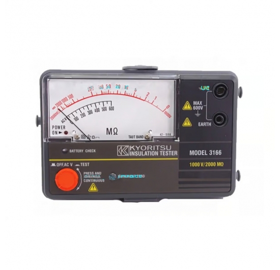Kyoritsu 3166 thuộc dòng đo điện trở cách điện được thiết kế dạng hộp cho phép đóng mở để đo, hộp cứng giúp bảo vệ máy tránh va đập và rơi rớt trong khi sử dụng, màn hình hiển thị dạng kim, thang đo tối đa 1000V/2000MΩ, hiển thị mở rộng megohm đọc dễ dàng hơn. Máy cung cấp dây đo đeo cổ tạo cho người sử dụng sự tiện lợi và thoải mái.